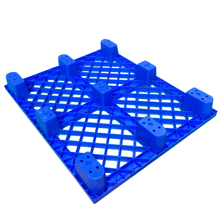 九腳網(wǎng)格塑料托盤(pán)的九腳網(wǎng)格托盤(pán)其底部是有‘九個(gè)腿’組成的,表面為‘網(wǎng)格’狀,行業(yè)為方便稱其為九腳網(wǎng)格托盤(pán),九腳網(wǎng)格托盤(pán)大多型號(hào)的都為輕型的塑料托盤(pán),不易用于上貨架或者較重貨物的周轉(zhuǎn)使用,大多情況下九腳網(wǎng)格塑料托盤(pán)都是用來(lái)倉(cāng)庫(kù)貨物墊倉(cāng)板防潮使用,對(duì)于輕型貨物的周轉(zhuǎn)也可