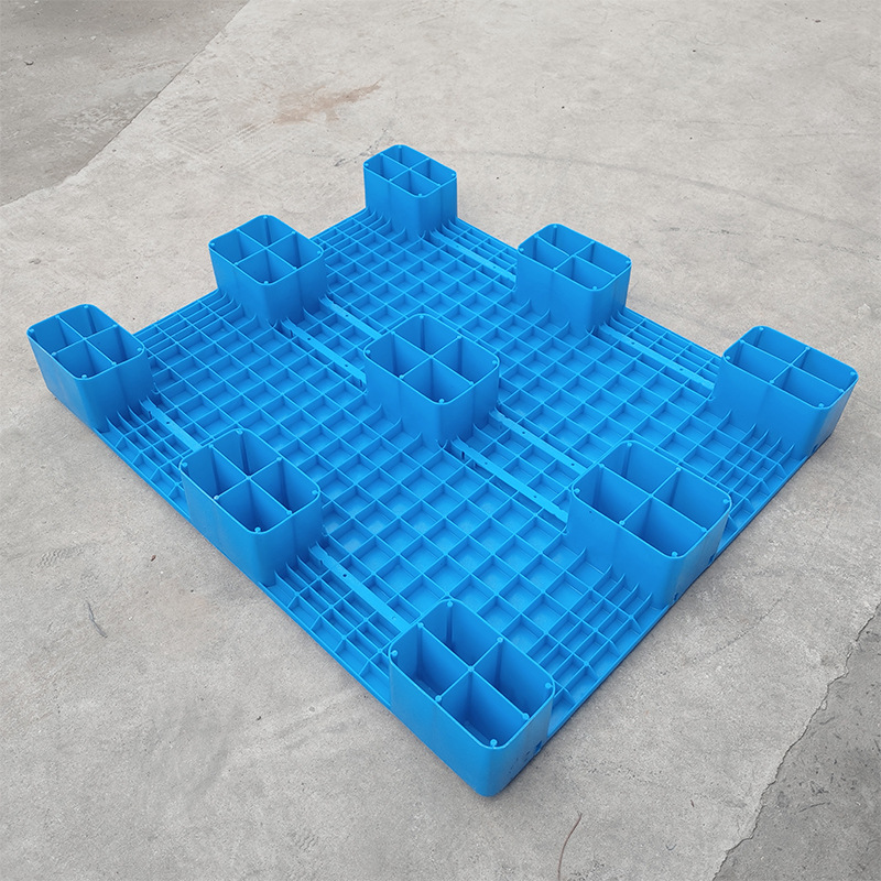 九腳平板塑料托盤底部為“九腳形”設(shè)計的塑料搬運制品,其表面為平面,廣泛應(yīng)用于紡織廠、食品廠、醫(yī)藥廠等企業(yè)。這種托盤的設(shè)計特點包括輕質(zhì)、平穩(wěn)、美觀,無釘無刺,無毒無味,耐酸堿,不腐爛,不易被細(xì)菌繁殖,易清洗消毒,不助燃,無靜電,無火花,防暴,防滑溜,回收價值高。與鋼托盤、木托盤相比,九腳平板塑料托盤具有更好的環(huán)保性和安全性,能夠提升企業(yè)形象,提高物流效率。此外,九腳平板塑料托盤因其表面為平板狀,不易積累灰塵,方便清洗;受力均勻,對貨物有很好的保護(hù)作用;平面上均留有排氣小孔,具有良好的透氣性和防潮效果。這種托盤主要應(yīng)用于倉庫輕型貨物墊倉板、叉車周轉(zhuǎn)較輕貨物使用,不適合于上貨架或者轉(zhuǎn)載大重量的貨物?