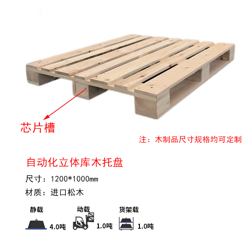 優(yōu)選材料:選用進(jìn)口松木制作,密度560-600kg/立方米,干燥性好,不易變形和開裂,耐腐蝕牢固耐用:采用三種不同強(qiáng)度的螺絲釘加固,隱形美觀,牢固性好芯片卡槽:托盤設(shè)有RFID芯片槽位置,可插電子芯片,高效管理貨物,是智能倉儲、物流電商、立體貨架等行業(yè)的得力助手四邊圓角:四角倒圓角設(shè)計,預(yù)防碰撞時給貨物帶來損害,