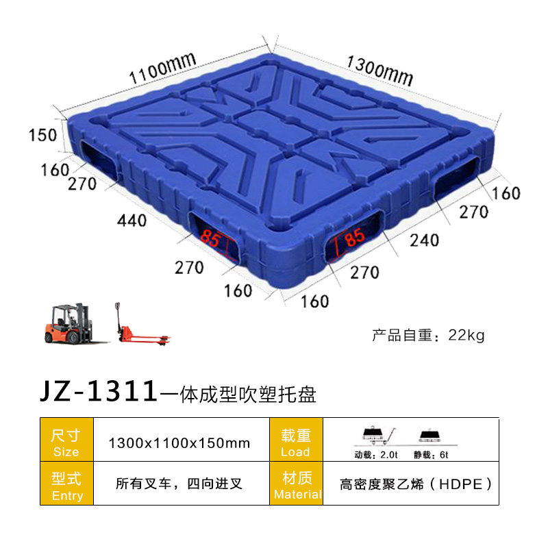雙面吹塑托盤采用吹塑成型工藝,通常需要使用大型的中空成型機(jī)進(jìn)行生產(chǎn)。這種托盤的設(shè)計(jì)允許其正反兩面均可使用,因此被稱為雙面塑料托盤。雙面吹塑塑料托盤的優(yōu)點(diǎn)包括承載能力強(qiáng)、使用壽命長(zhǎng),這得益于其內(nèi)部設(shè)計(jì)了X軸向緯筋、Y軸向縱筋、Z軸向豎筋,以及內(nèi)部至少包含兩個(gè)支撐架,面板的兩頭向內(nèi)折回,從而增強(qiáng)了其承載